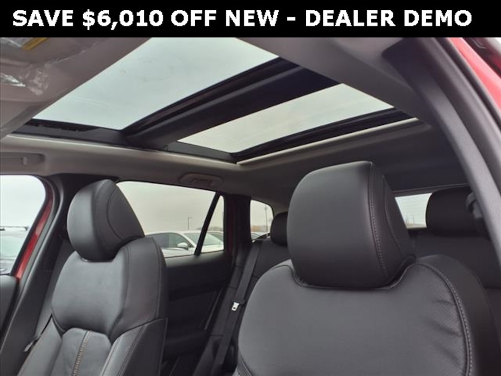 Cargo Package (Cargo Blocks), 12 Speakers, 4-Wheel Disc Brakes, ABS brakes, Air Conditioning, Alloy wheels, AM/FM radio: SiriusXM, AppLink/Apple CarPlay and Android Auto, Auto High-beam Headlights, Auto-dimming Rear-View mirror, Automatic temperature control, Brake assist, Bumpers: body-color, Delay-off headlights, Driver door bin, Driver vanity mirror, Dual front impact airbags, Dual front side impact airbags, Electronic Stability Control, Emergency communication system: MAZDA CONNECT, Exterior Parking Camera Rear, Front anti-roll bar, Front Bucket Seats, Front Center Armrest, Front dual zone A/C, Front reading lights, Front wheel independent suspension, Fully automatic headlights, Heated door mirrors, Heated front seats, Illuminated entry, Knee airbag, Leather Seat Trim, Leather Shift Knob, Leather steering wheel, Low tire pressure warning, Memory seat, Occupant sensing airbag, Outside temperature display, Overhead airbag, Overhead console, Panic alarm, Passenger door bin, Passenger vanity mirror, Power door mirrors, Power driver seat, Power Liftgate, Power moonroof, Power passenger seat, Power steering, Power windows, Radio data system, Radio: AM/FM/HD Bose 12-Speaker Audio Sound System, Rain sensing wipers, Rear seat center armrest, Rear window defroster, Rear window wiper, Remote keyless entry, Soul Red Crystal Metallic Paint Charge, Speed control, Speed-sensing steering, Split folding rear seat, Spoiler, Steering wheel mounted audio controls, Tachometer, Telescoping steering wheel, Tilt steering wheel, Traction control, Trip computer, Turn signal indicator mirrors, and Variably intermittent wipers.
