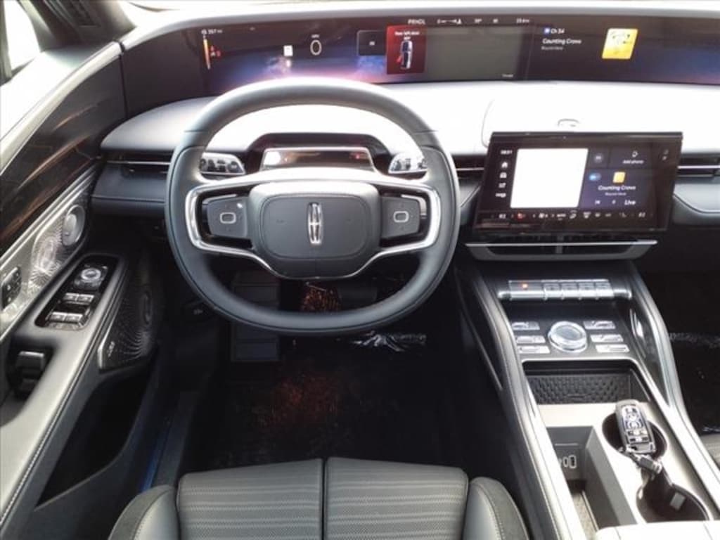 Equipment Group 203A (110V Power Converter, Auto Air Refresh, Digital Scent, Hands-Free Power Liftgate, Lincoln BlueCruise Equipped (4-Years Included), Panoramic Vista Roof, Premium Lthr-Trmmd Heated/Ventilated Comfort Seats, Radio: AM/FM/HD w/Revel Ultima Audio System, and Rear Heated Seats w/Switch Control), Jet Appearance Package (87T) (Black Exterior Elements, Body Color, and Wheels: 22" Satin Dark Luster Nickel), 10 Speakers, 3.81 Axle Ratio, 360 Degree Camera, 4-Wheel Disc Brakes, ABS brakes, Active Park Assist 2.0, Adaptive suspension, Air Conditioning, Alexa Built-In, Alloy wheels, AM/FM Radio, AM/FM radio: SiriusXM with 360L, Apple CarPlay/Android Auto, Auto High-beam Headlights, Auto tilt-away steering wheel, Auto-dimming Rear-View mirror, Automatic temperature control, Blind Spot Info. System w/Cross-Traffic Alert, Brake assist, Bumpers: body-color, Compass, Delay-off headlights, Driver door bin, Driver vanity mirror, Dual front impact airbags, Dual front side impact airbags, Electronic Stability Control, Emergency communication system: 911 Assist, Exterior Parking Camera Rear, Four wheel independent suspension, Front anti-roll bar, Front Bucket Seats, Front Center Armrest w/Storage, Front dual zone A/C, Front reading lights, Fully automatic headlights, Garage door transmitter: HomeLink, Heated door mirrors, Heated front seats, Heated steering wheel, Illuminated entry, Intelligent Adaptive Cruise Control, Knee airbag, Leather steering wheel, Lincoln BlueCruise Equipped (90-Day Trial), Low tire pressure warning, Memory seat, Navigation System, Occupant sensing airbag, Outside temperature display, Overhead airbag, Overhead console, Panic alarm, Passenger door bin, Passenger vanity mirror, Power door mirrors, Power driver seat, Power Liftgate, Power passenger seat, Power steering, Power windows, Prem Lthr-Trimmed Heated/Ventilated Captain Seats, Radio data system, Rain sensing wipers, Rear anti-roll bar, Rear reading lights, Rear seat center armrest, Rear window defroster, Rear window wiper, Remote keyless entry, Security system, Speed control, Speed-sensing steering, Speed-Sensitive Wipers, Split folding rear seat, Spoiler, Steering wheel memory, Steering wheel mounted audio controls, Tachometer, Telescoping steering wheel, Tilt steering wheel, Traction control, Trip computer, Turn signal indicator mirrors, Variably intermittent wipers, Ventilated front seats, and Wheels: 21" Ultra Bright Machined Aluminum.