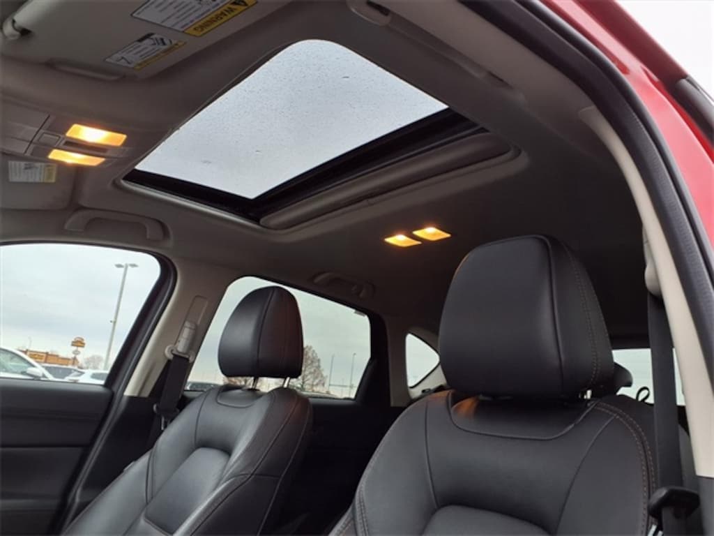 10 Speakers, 4-Wheel Disc Brakes, 4.624 Axle Ratio, ABS brakes, Air Conditioning, Alloy wheels, AM/FM radio: SiriusXM, AppLink/Apple CarPlay and Android Auto, Auto High-beam Headlights, Auto-dimming Rear-View mirror, Automatic temperature control, Bose 10-Speaker Audio Sound System, Brake assist, Bumpers: body-color, Delay-off headlights, Driver door bin, Driver vanity mirror, Dual front impact airbags, Dual front side impact airbags, Electronic Stability Control, Emergency communication system, Exterior Parking Camera Rear, Four wheel independent suspension, Front anti-roll bar, Front Bucket Seats, Front Center Armrest, Front dual zone A/C, Front fog lights, Front reading lights, Fully automatic headlights, Garage door transmitter: HomeLink, Heated door mirrors, Heated front seats, Heated Front Sport Seats, Illuminated entry, Lane Departure Warning System, Leather Seat Trim, Leather Shift Knob, Low tire pressure warning, Memory seat, Occupant sensing airbag, Outside temperature display, Overhead airbag, Overhead console, Panic alarm, Passenger door bin, Passenger vanity mirror, Power door mirrors, Power driver seat, Power Liftgate, Power moonroof, Power passenger seat, Power steering, Power windows, Radio data system, Radio: AM/FM/HD Audio System, Rain sensing wipers, Rear anti-roll bar, Rear reading lights, Rear seat center armrest, Rear window defroster, Rear window wiper, Remote keyless entry, Soul Red Crystal Metallic Paint, Speed control, Speed-sensing steering, Split folding rear seat, Spoiler, Steering wheel mounted audio controls, Tachometer, Telescoping steering wheel, Tilt steering wheel, Traction control, Trip computer, Turn signal indicator mirrors, Variably intermittent wipers, and Wheels: 19" x 7J Aluminum Alloy w/Silver Finish.