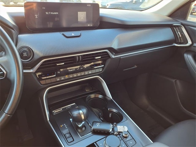 3rd row seats: bench, 4-Wheel Disc Brakes, 8 Speakers, ABS brakes, Air Conditioning, Alloy wheels, AM/FM radio, AppLink/Apple CarPlay and Android Auto, Auto High-beam Headlights, Automatic temperature control, Brake assist, Bumpers: body-color, Compass, Delay-off headlights, Driver door bin, Driver vanity mirror, Dual front impact airbags, Dual front side impact airbags, E911 Automatic Emergency Notification, Electronic Stability Control, Emergency communication system: MAZDA CONNECT, Exterior Parking Camera Rear, Four wheel independent suspension, Front anti-roll bar, Front Bucket Seats, Front Center Armrest w/Storage, Front dual zone A/C, Front reading lights, Fully automatic headlights, Heated door mirrors, Illuminated entry, Infotainment System Voice Command, Knee airbag, Leather Shift Knob, Leather steering wheel, Leatherette Seat Trim, Low tire pressure warning, Mazda Connected Services, Occupant sensing airbag, Outside temperature display, Overhead airbag, Overhead console, Pandora Internet Radio Integration, Panic alarm, Passenger door bin, Passenger vanity mirror, Power door mirrors, Power driver seat, Power Liftgate, Power steering, Power windows, Radio Broadcast Data System Program Information, Radio data system, Radio: AM/FM w/HD/8-Speaker Sound System, Rain sensing wipers, Rear air conditioning, Rear anti-roll bar, Rear reading lights, Rear seat center armrest, Rear window defroster, Rear window wiper, Remote keyless entry, SMS Text Msg Audio Delivery & Reply, Speed control, Speed-sensing steering, Split folding rear seat, Spoiler, Steering wheel mounted audio controls, Tachometer, Telescoping steering wheel, Tilt steering wheel, Traction control, Trip computer, Turn signal indicator mirrors, Variably intermittent wipers, and Wheels: 19" x 8.5J Aluminum Alloy.